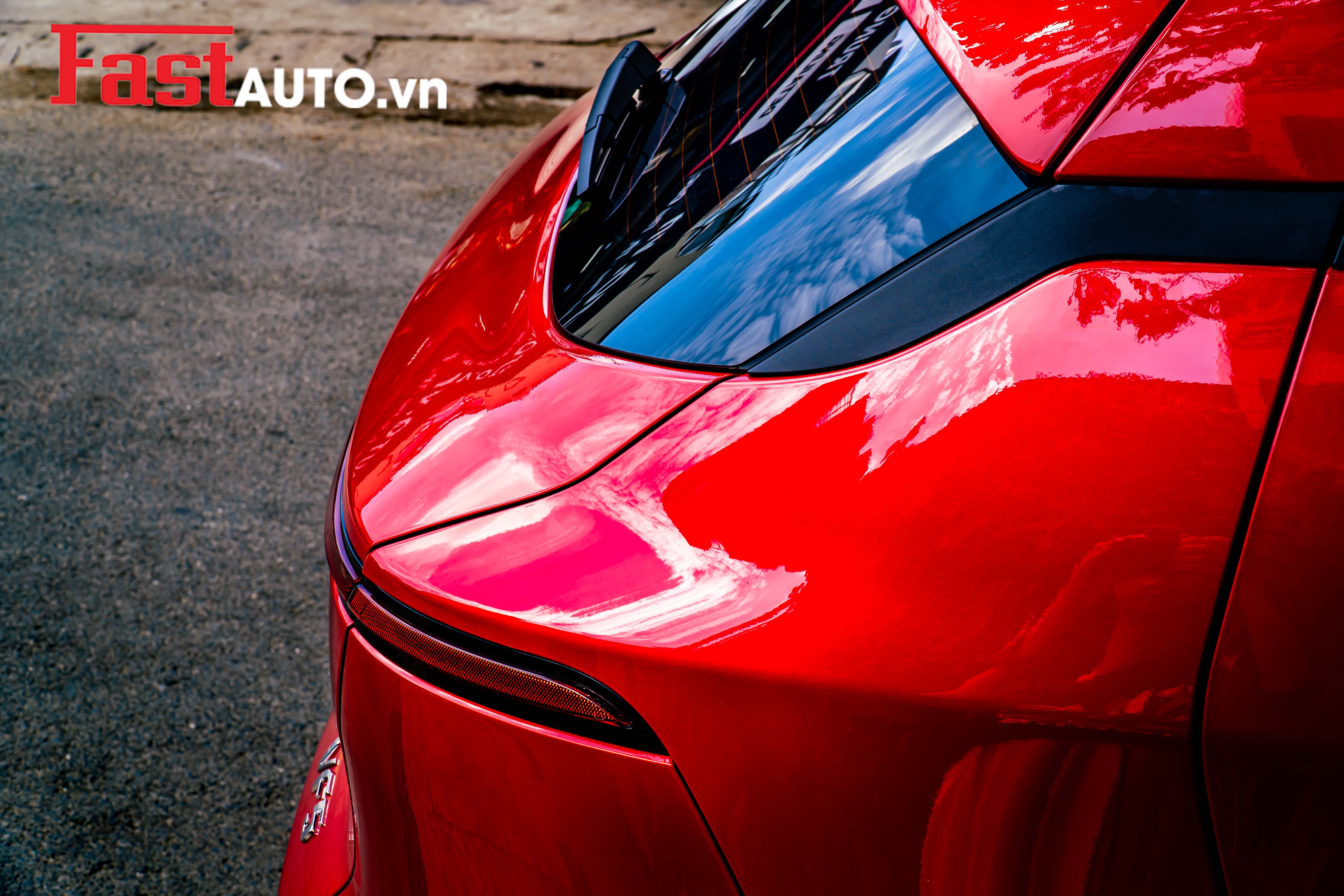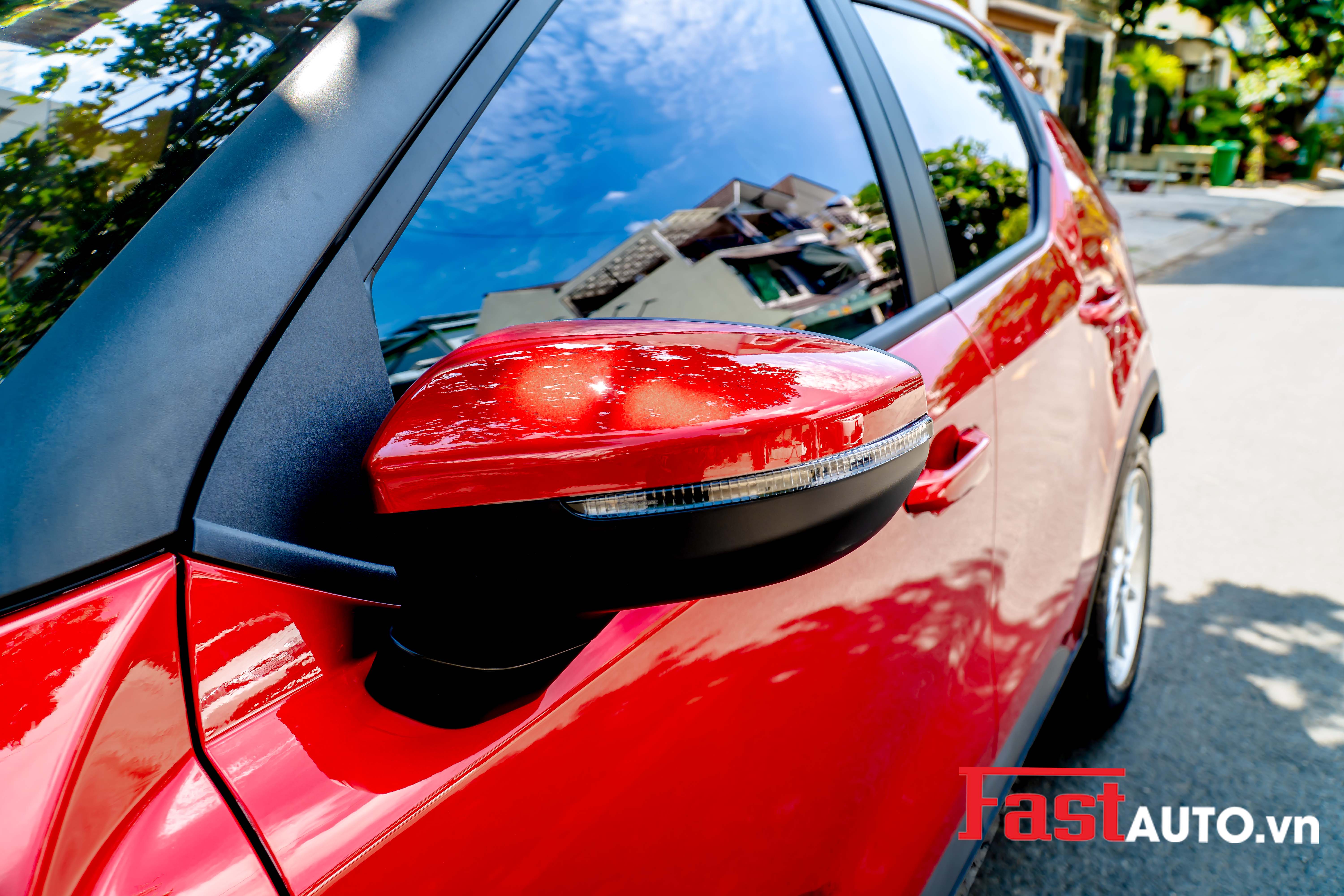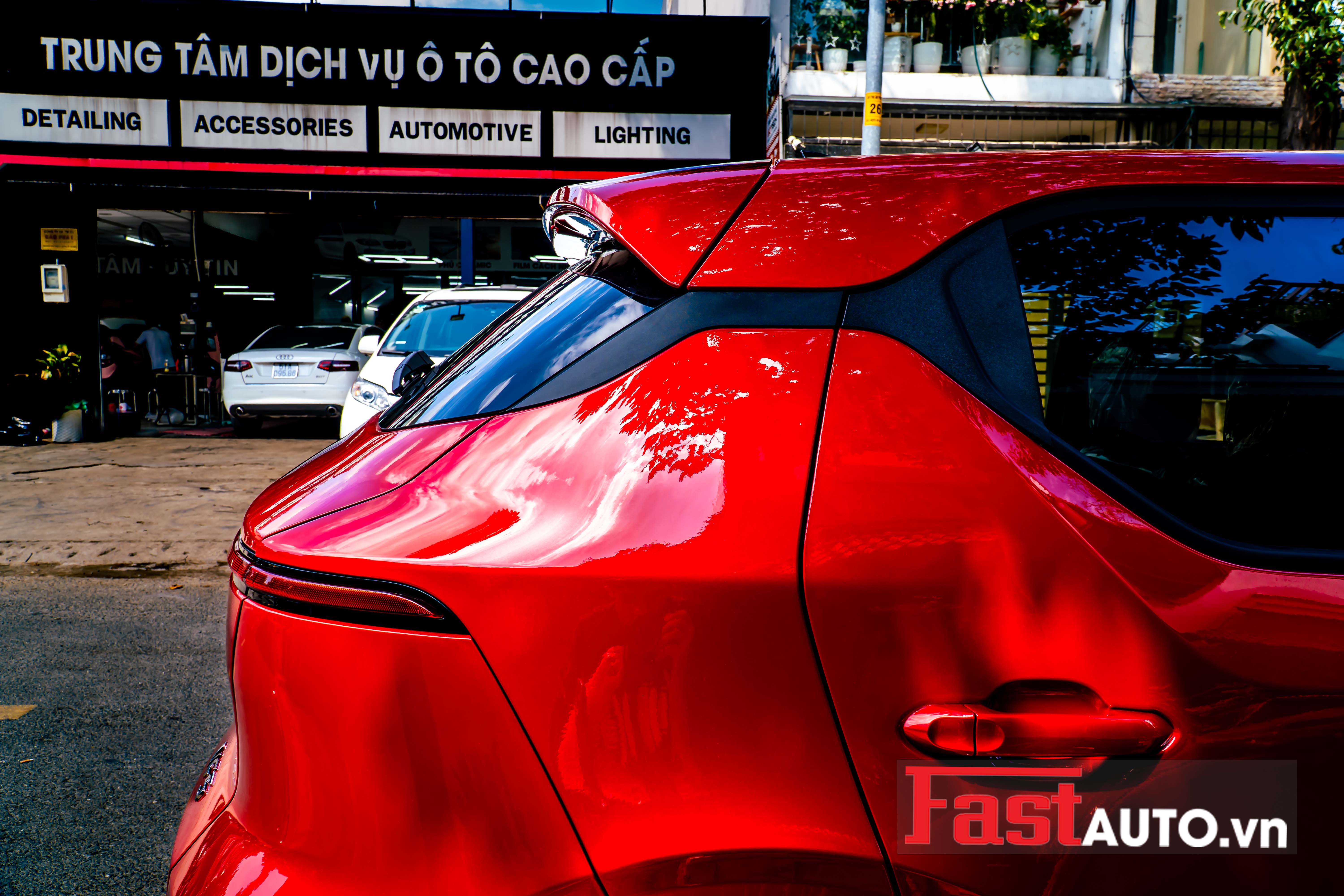 Các vị trí phức tạp như cụm đèn trước sau, gương chiếu hậu hay các góc bo tròn của VF5 đều được bao phủ kín kẽ, thẩm mỹ cao.