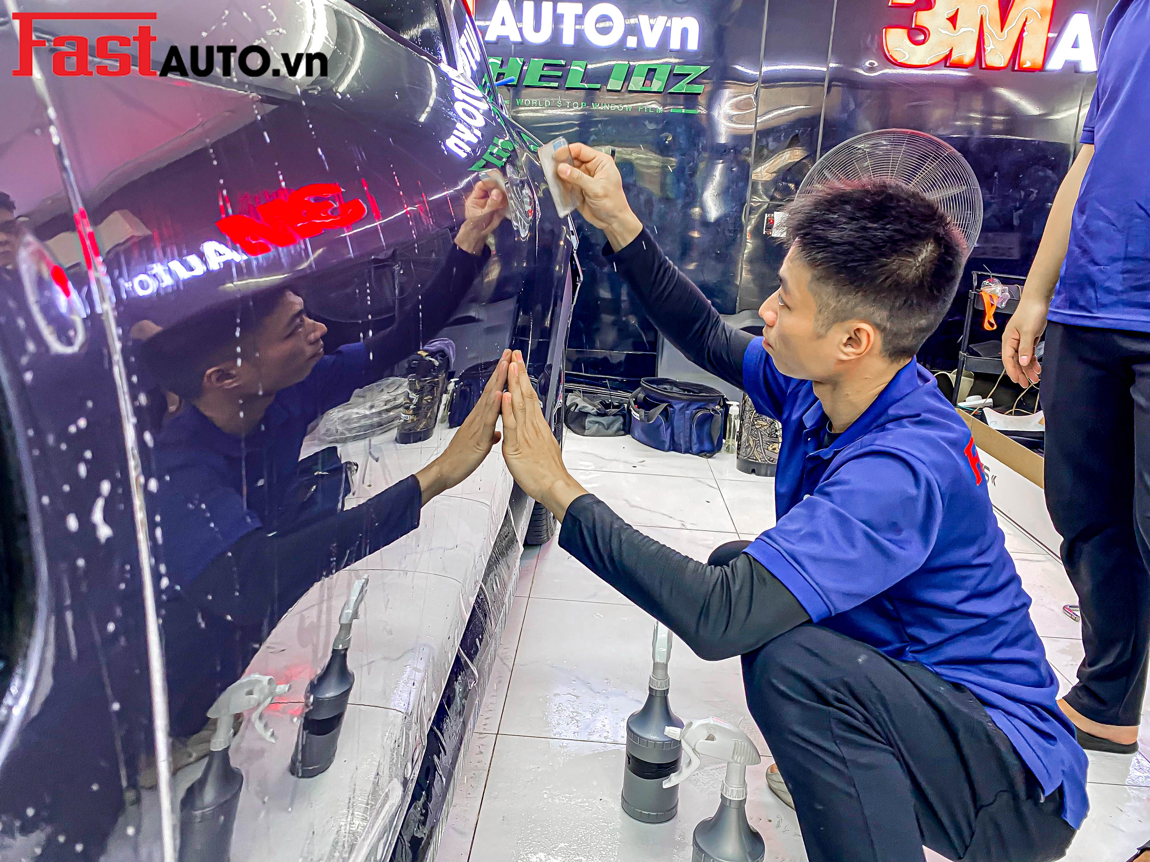 Nếu xe đã qua sử dụng và có nhiều vết xước xoáy, kỹ thuật viên sẽ tiến hành đánh bóng nhẹ để phục hồi độ bóng. Mục tiêu là để lớp sơn dưới phim PPF đạt trạng thái hoàn hảo nhất trước khi được "phong tỏa" bảo vệ.