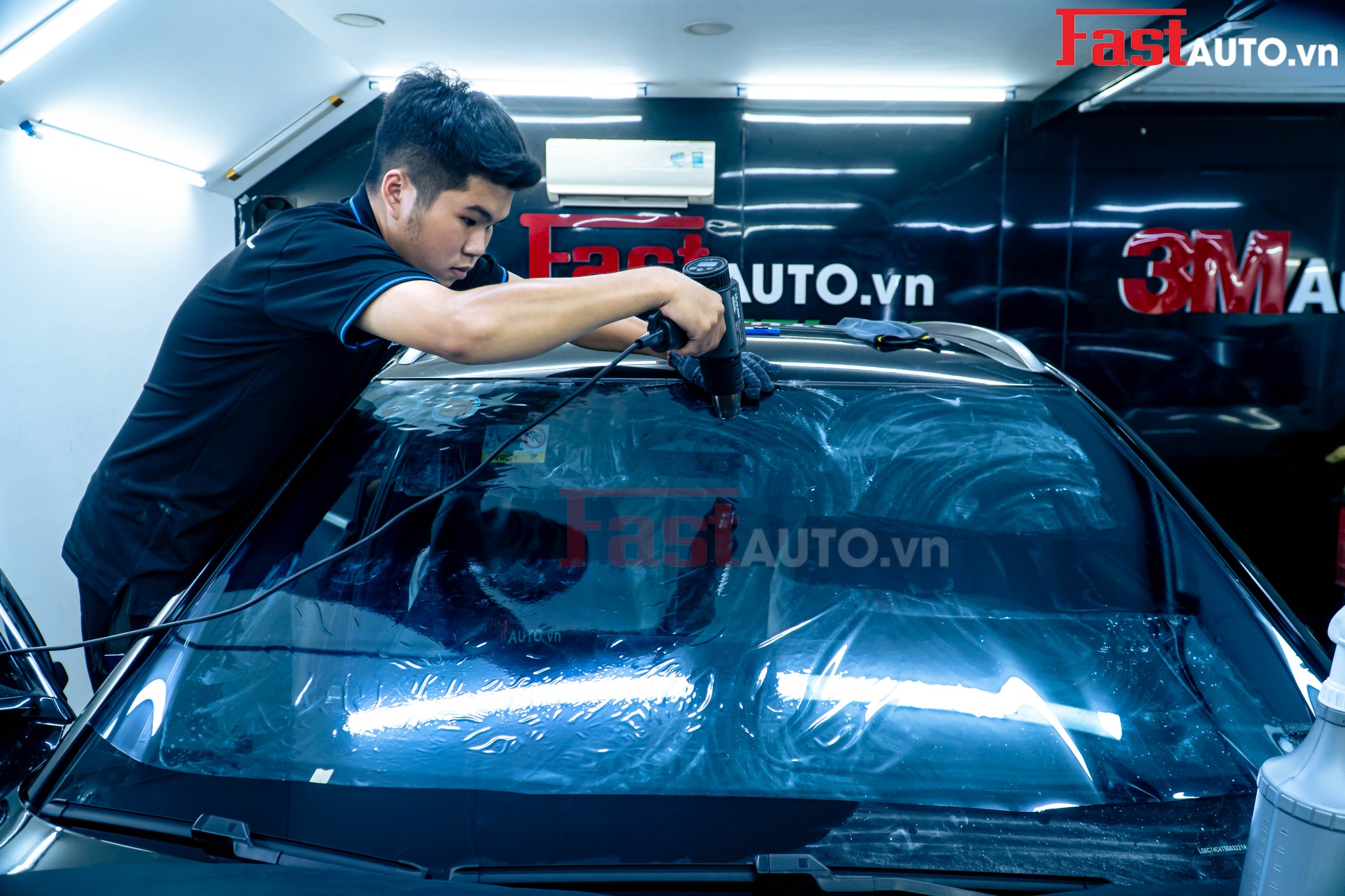 Nếu xe đã qua sử dụng và có nhiều vết xước xoáy, kỹ thuật viên sẽ tiến hành đánh bóng nhẹ để phục hồi độ bóng. Mục tiêu là để lớp sơn dưới phim PPF đạt trạng thái hoàn hảo nhất trước khi được "phong tỏa" bảo vệ.