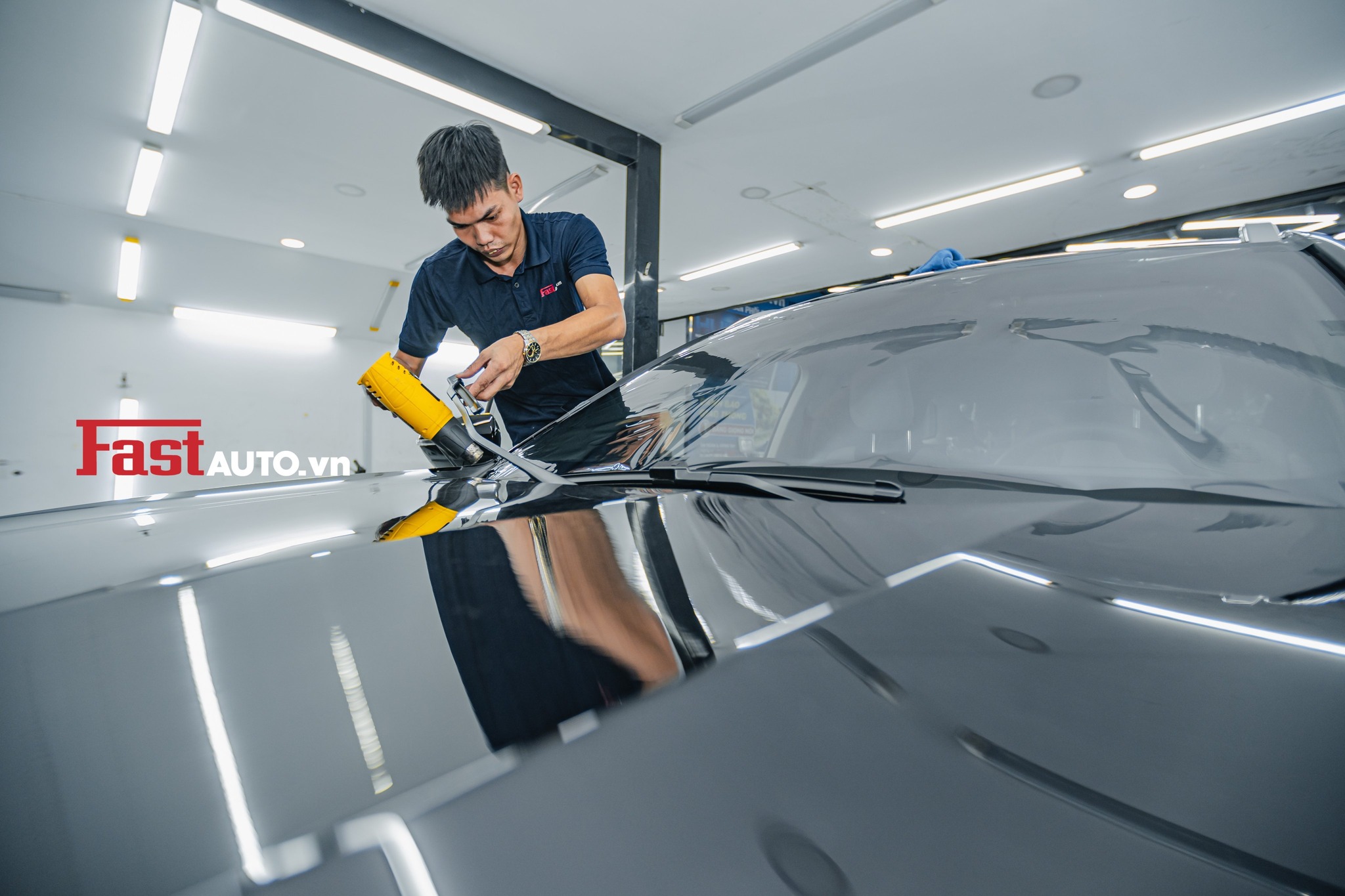 Nếu xe đã qua sử dụng và có nhiều vết xước xoáy, kỹ thuật viên sẽ tiến hành đánh bóng nhẹ để phục hồi độ bóng. Mục tiêu là để lớp sơn dưới phim PPF đạt trạng thái hoàn hảo nhất trước khi được "phong tỏa" bảo vệ.